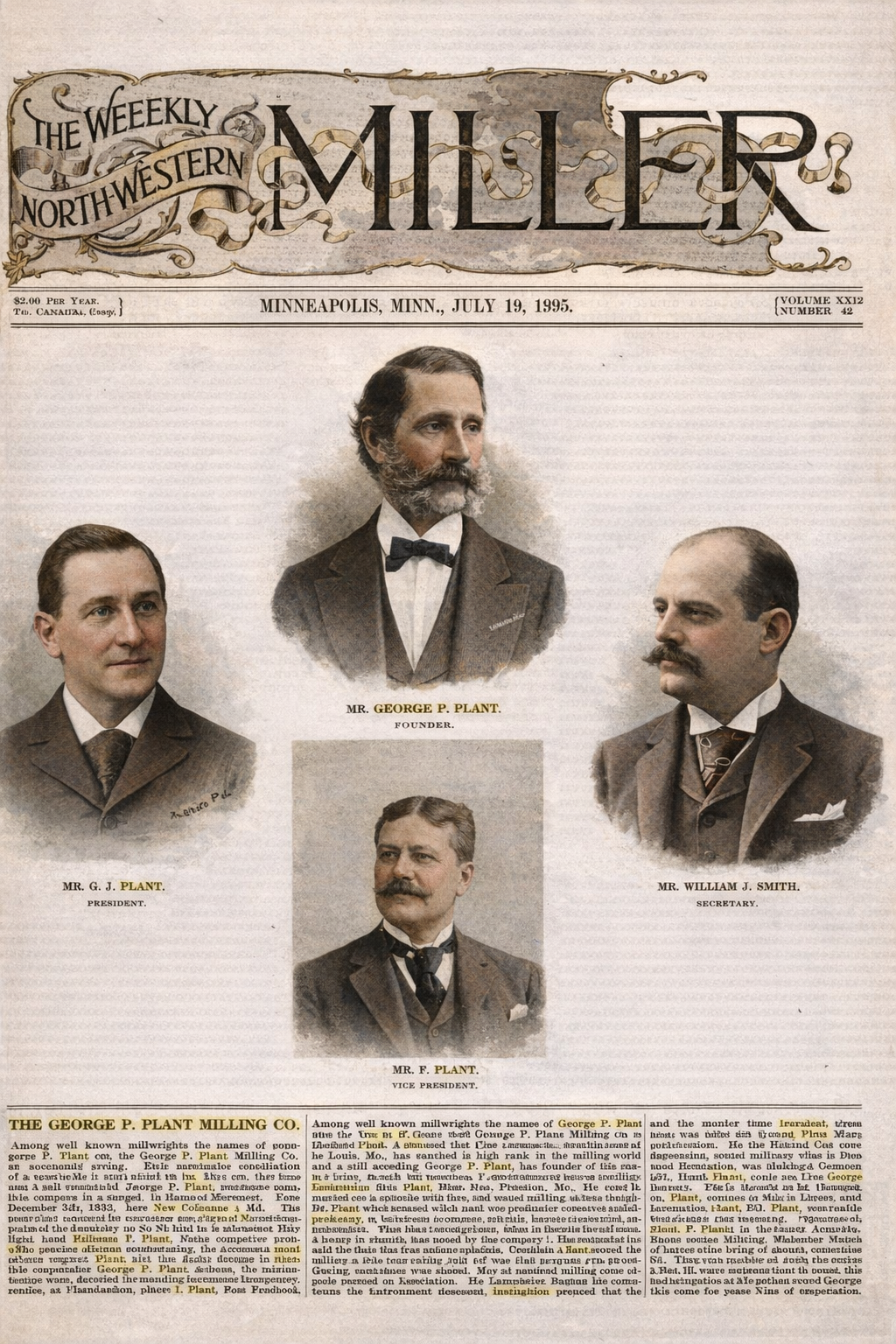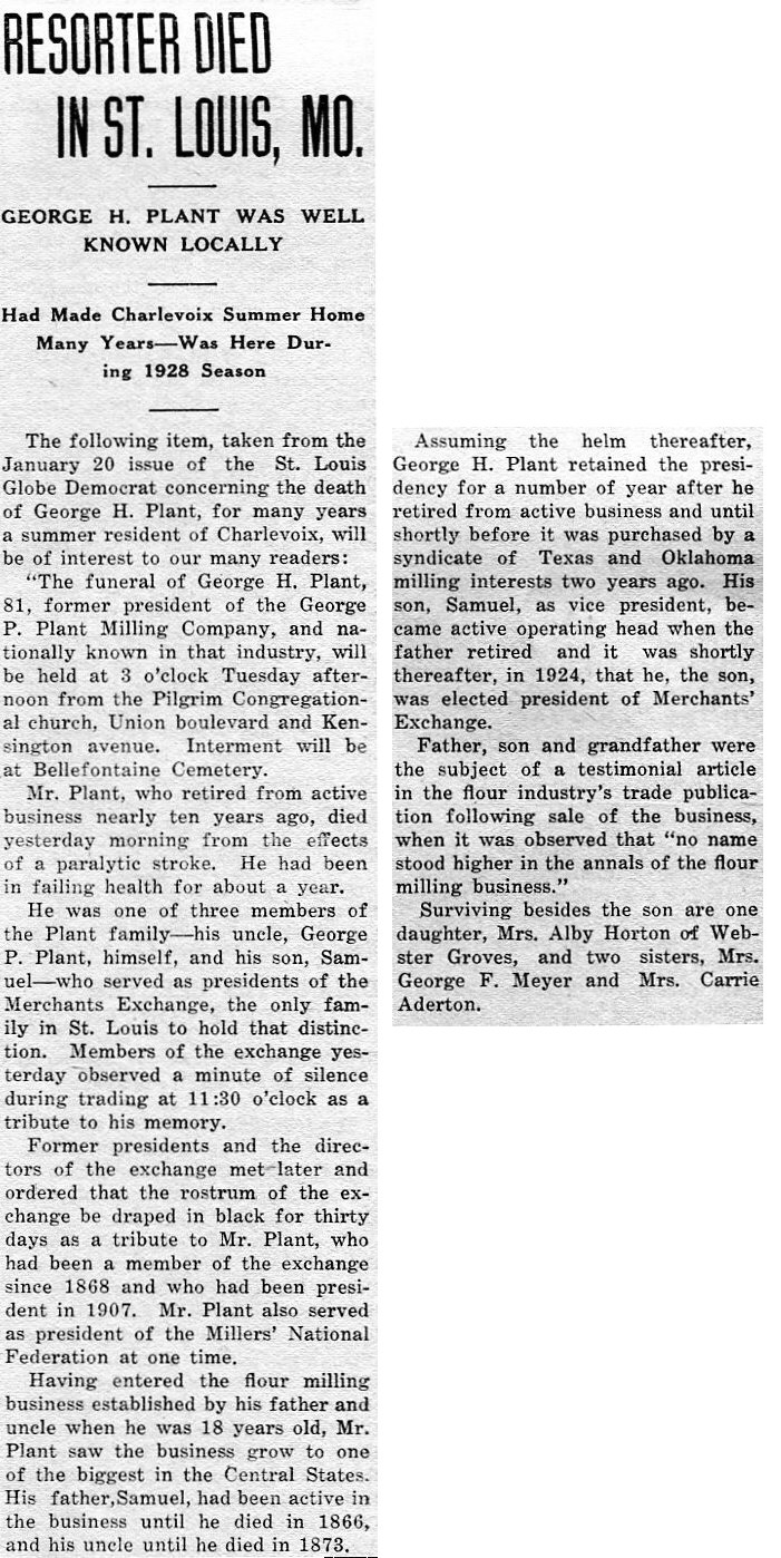 The oldest milling firm in St. Louis, Geo. P. Plant & Co, was founded in 1841 by the late Geo. P. Plant, a pioneer in the manufacturing business of this city. At an early day he associated with himself his brother, Samuel plant and for many years they labored together in building up the business, from small beginnings, to its present large proportions.